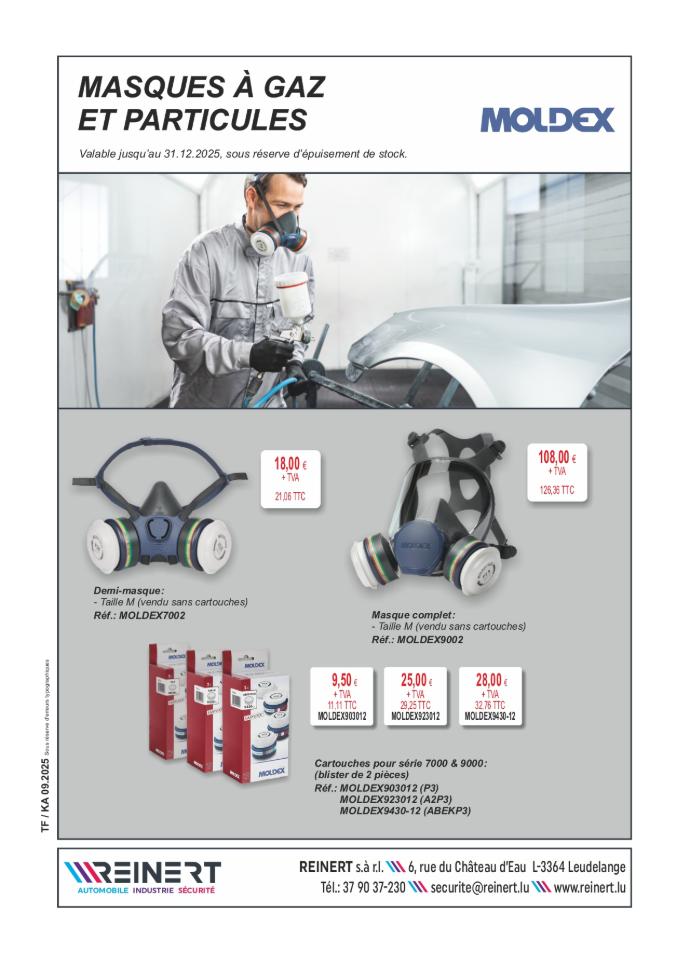 PROMOTION MASQUES À GAZ & PARTICULES MOLDEX - Valable jusqu'au 31/12/2025