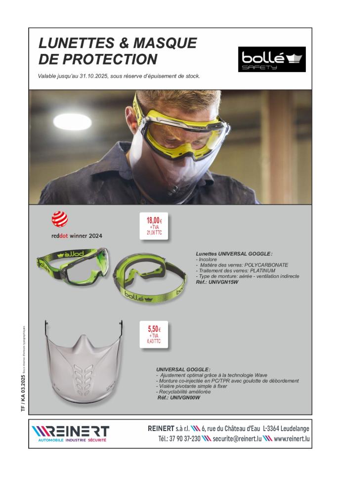 PROMOTION LUNETTES DE PROTECTION BOLLE - Valable jusqu'au 31/10/2025