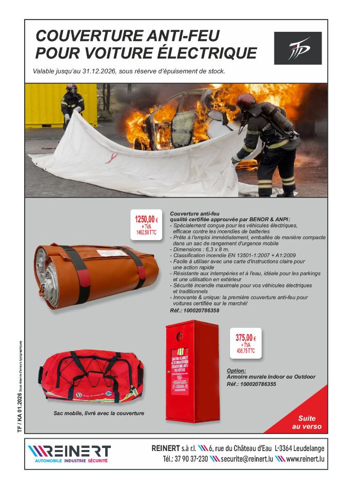 COUVERTURE ANTI-FEU POUR VOITURE ÉLECTRIQUE - Valable jusqu'au 31/12/2026, si stock